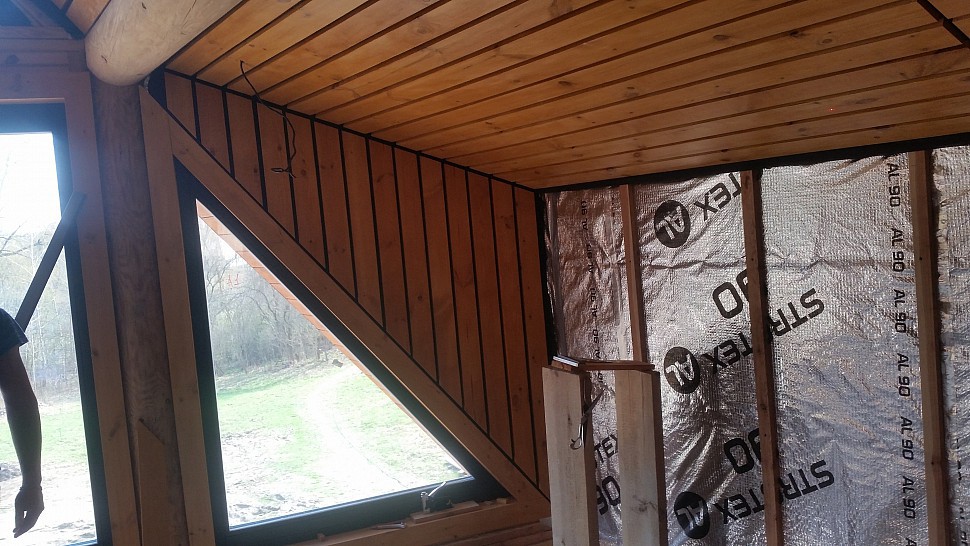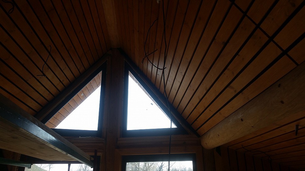 Рославичи апрель 2018Монтаж потолка в "немецком стиле" , конопатка. Монтаж наличников. Пример правильной конопатки
